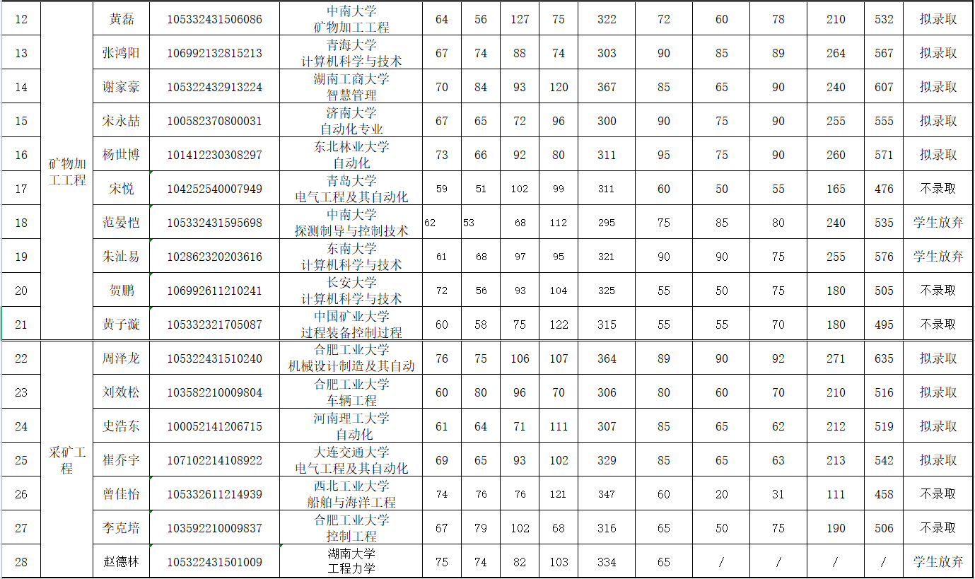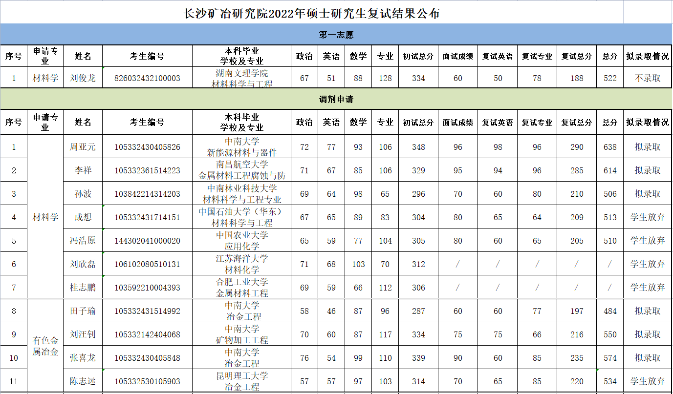 長沙礦冶研究院2022年碩士研究生復(fù)試結(jié)果公布